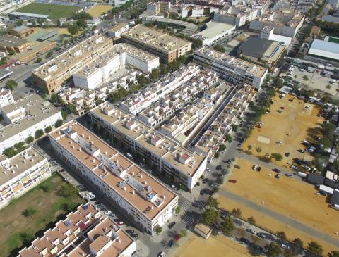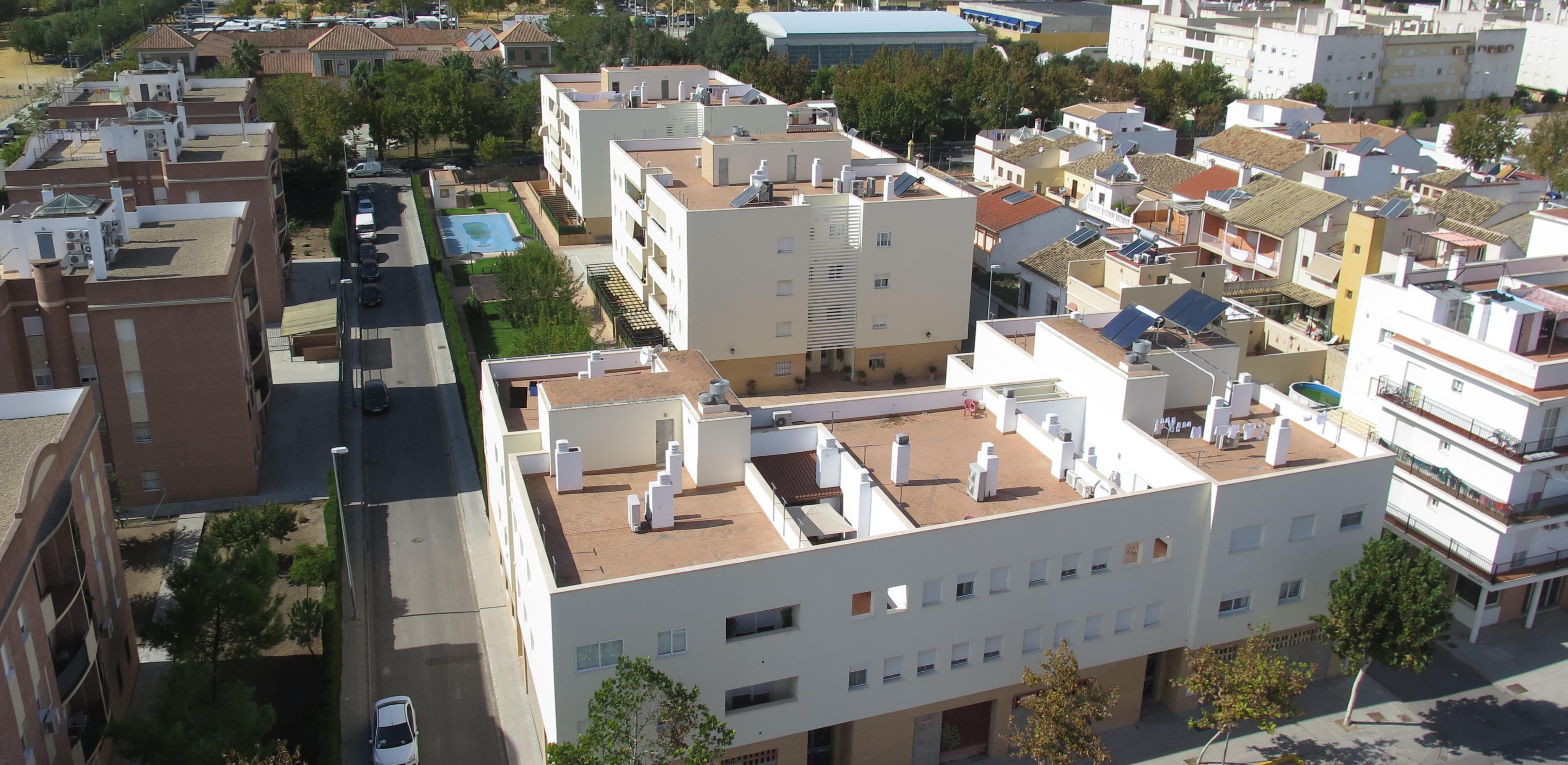 Nucleo de cuatro bloques de viviendas con un gran jardin centrar